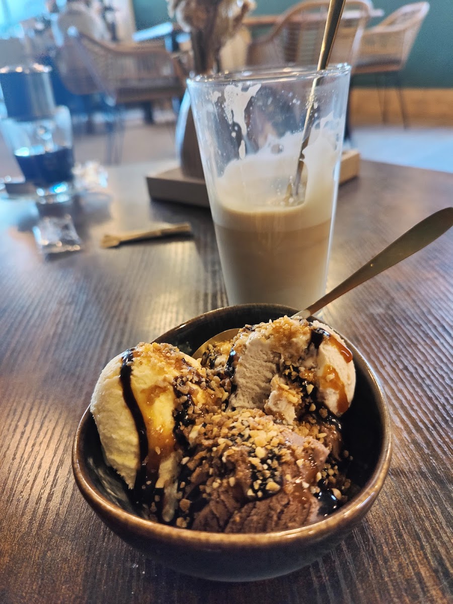 The menu at Glücksgefühl is a celebration of flavor and creativity. Delight in their exquisite range of ice cream, tantalizing cakes, and rich beverages. Many reviews sing praises of the coffee and desserts. Sabine Jäger expresses the joy of experiencing "super" flavors in both ice cream and cappuccino—an experience that you, too, can savor on your visit. For families, Marie I. highlights a special touch: a spacious play area for children, ensuring that both parents and kids can find their bliss in this little oasis.